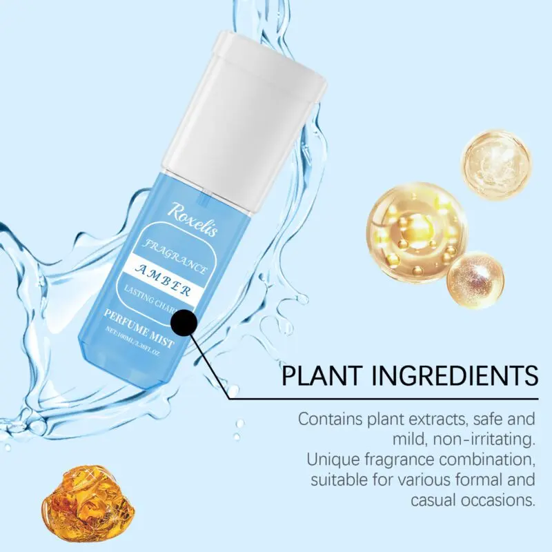 Amber Jasmine perfume spray combines glycerin and jasmine flower extract for a fresh, floral fragrance with subtle fruity notes. This long-lasting perfume features a complex aroma profile perfect for daily wear. To use: open cap and spray on pulse points like neck and wrists. Offers a gentle, elegant scent suitable for any occasion.