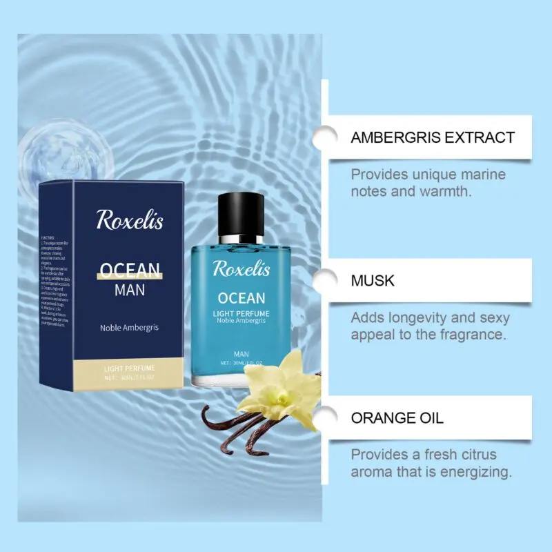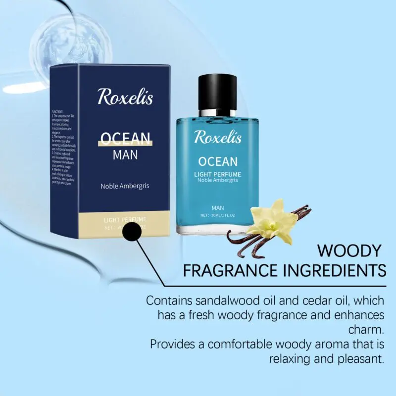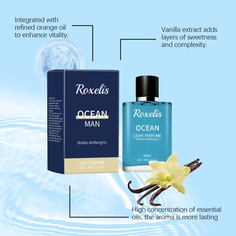 Roxelis Ambergris Blue Ocean Perfume for Men – Fresh Aquatic Scent with Musk & Citrus Notes