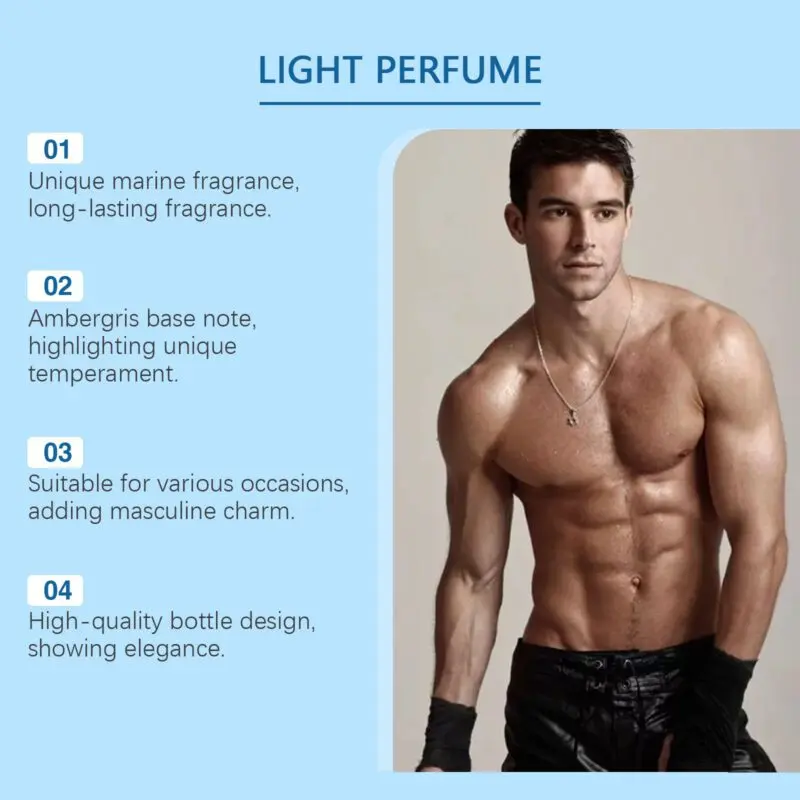 Ambergris Blue Sea perfume blends ambergris extract, ketone musk, and orange oil for a fresh aquatic fragrance with warm undertones. This long-lasting scent features crisp citrus top notes and deep musk base notes. Apply by spraying evenly on pulse points like wrists, neck, and behind ears. Ideal for daily wear, this versatile fragrance captures the refreshing essence of ocean breezes with a sophisticated aroma profile.