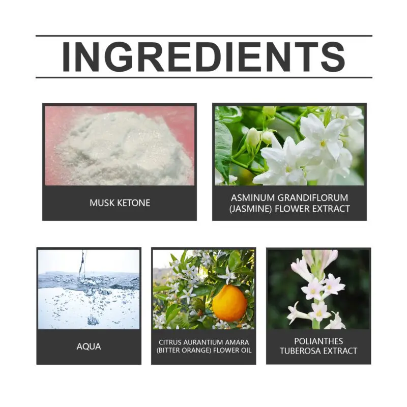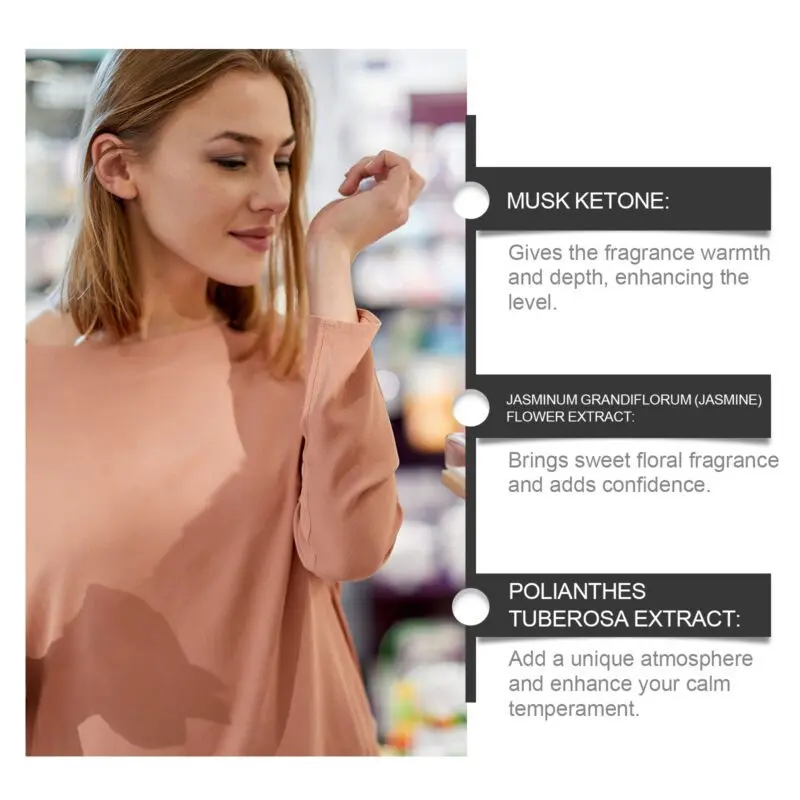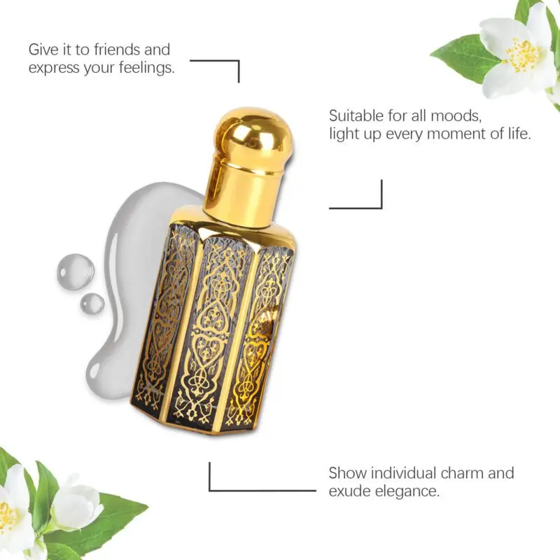 Arabian-inspired evening fragrance featuring jasmine extract, neroli oil, and tuberose extract. This natural perfume blend creates a sophisticated scent with floral notes that develop over time. Easy-to-use roll-on application for wrists and pulse points. Fragrance develops fully within 2 minutes of application, offering harmonious floral aroma with warm undertones. Compact portable design for convenient use.