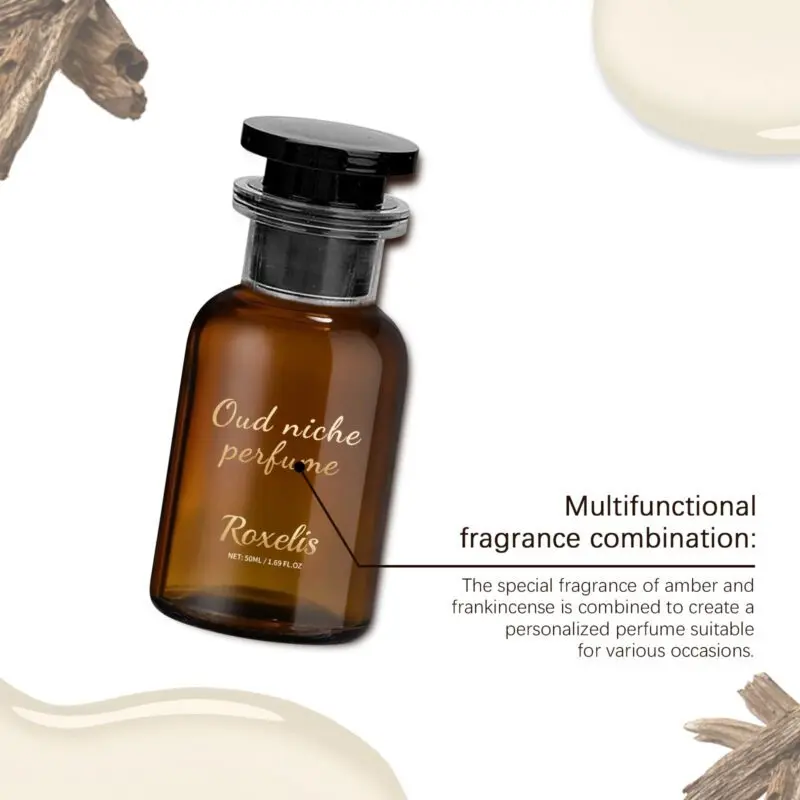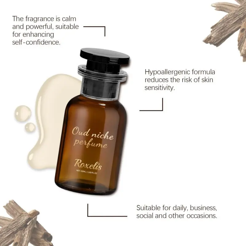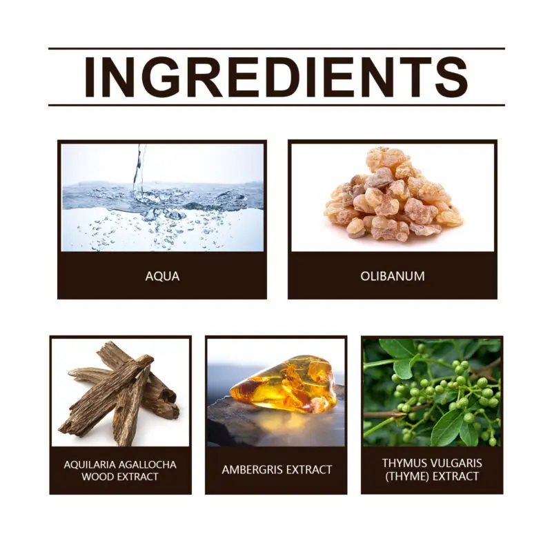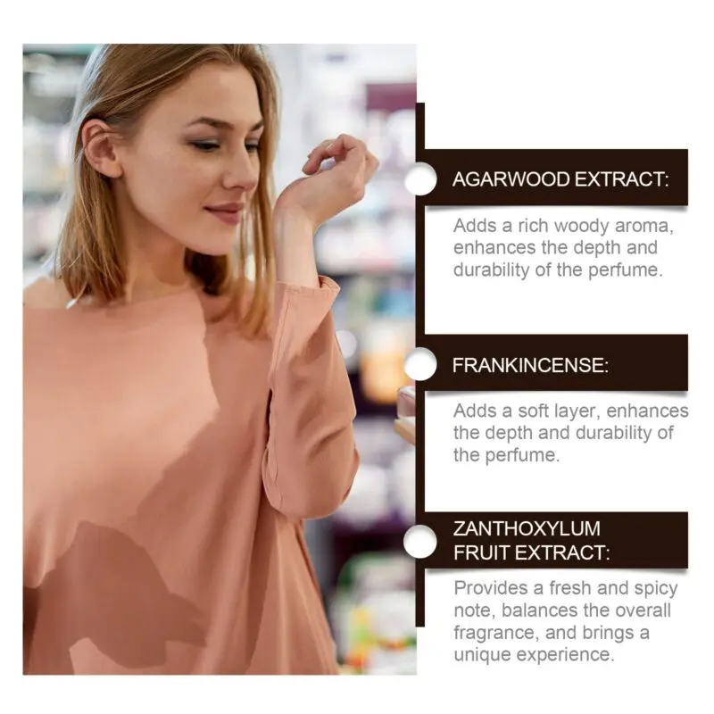 This black wood niche perfume features frankincense, agarwood extract, and amber extract for a rich, warm aroma. Designed to enhance depth and longevity, it creates layered sophistication with distinct top, middle, and base notes. Application tips: 1. Spray lightly on pulse points (wrists, neck, chest). 2. Use 1-2 sprays for optimal fragrance distribution. The agarwood extract provides earthy warmth, while amber adds subtle complexity for a refined, comforting scent experience.
