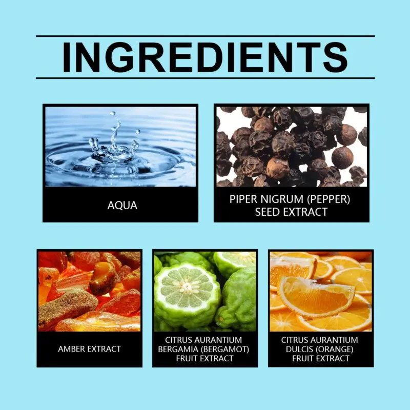This cologne features black pepper seed extract, amber extract, and bergamot fruit extract to enhance fragrance depth and longevity. The fresh, vibrant blend combines fruity notes with a light, refreshing aroma for daylong wear. Apply by spraying on wrists, neck, and behind ears, or mist into the air for even distribution. Non-greasy formula ensures comfortable wear with a subtle, sophisticated scent profile.
