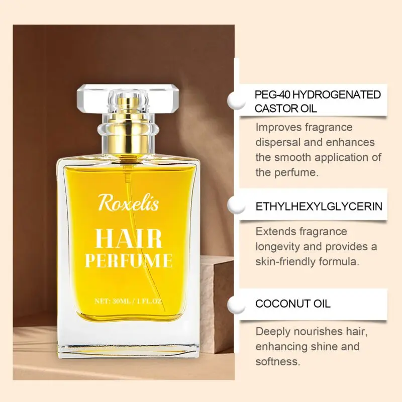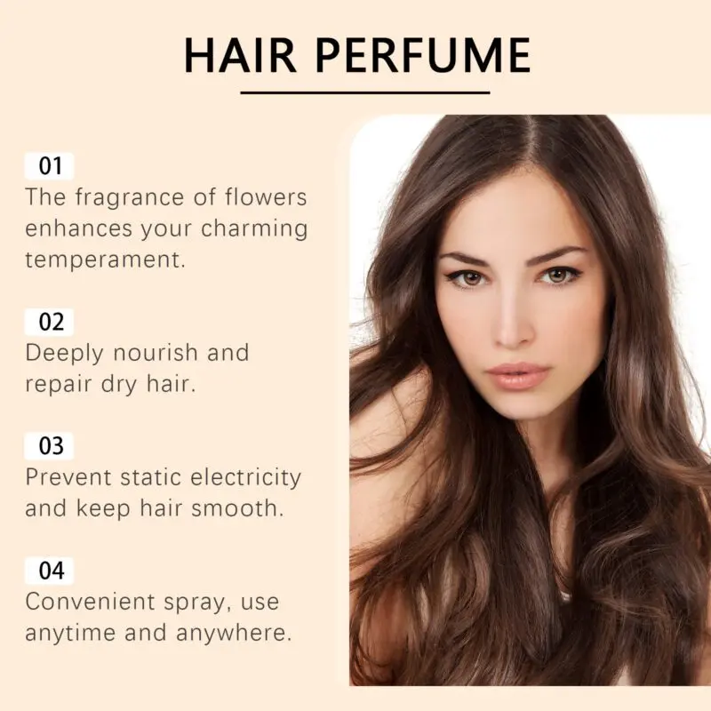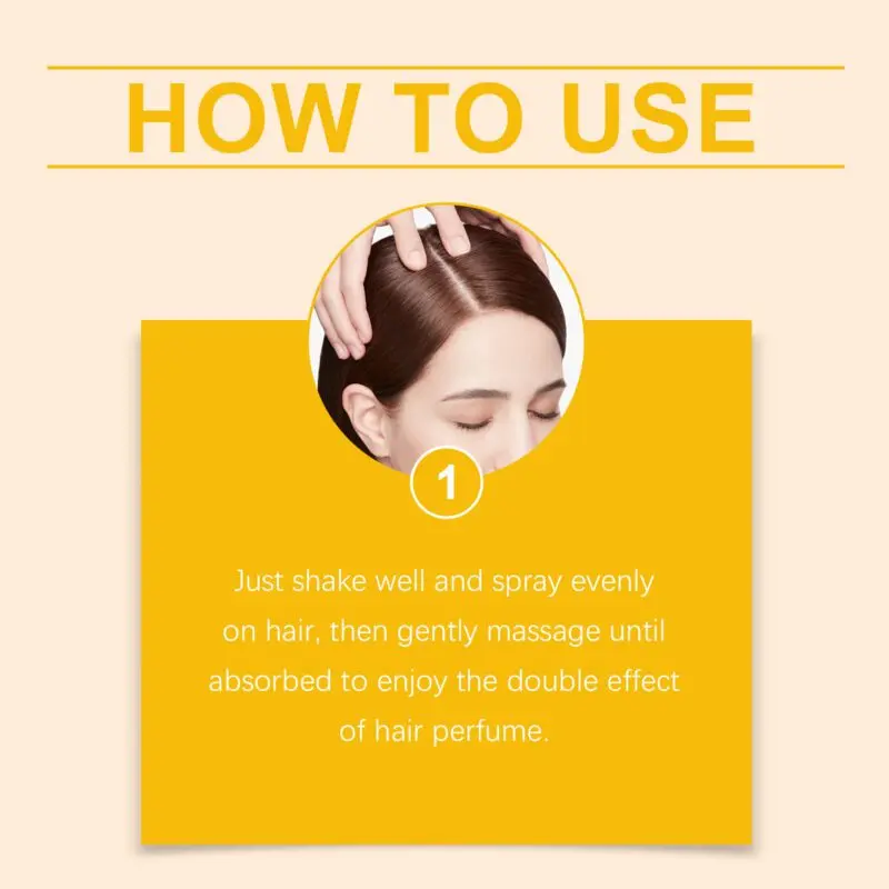 Chamomile honey-scented hair perfume with PEG-40 hydrogenated castor oil and ethylhexyl glycerol. Provides long-lasting fragrance while hydrating hair strands to enhance shine and manageability. Formulated to help reduce dryness and restore natural luster. Easy to use: shake well, spray evenly on hair, and massage gently for absorption. Leaves hair feeling soft, smooth, and nourished with regular use.