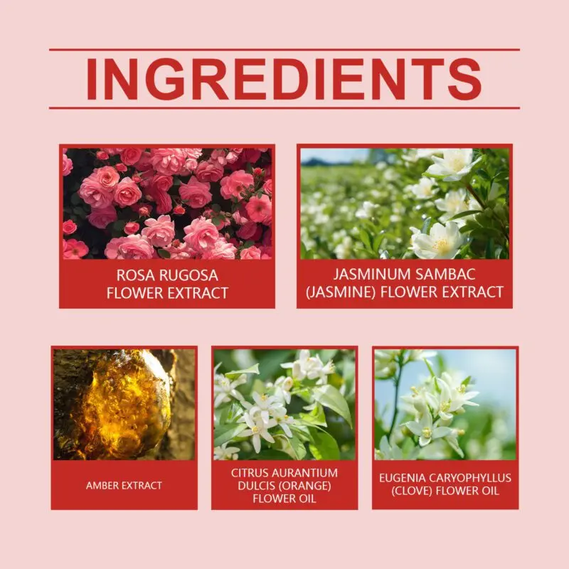 Charm Perfume Spray blends rose, jasmine, and amber extracts to create a romantic, warm floral aroma. The balanced formula enhances fragrance longevity while maintaining a light, comfortable feel. Apply by spraying on pulse points like wrists and neck, or mist into air for even distribution. Features fresh floral accents with subtle amber undertones for daytime or evening wear.