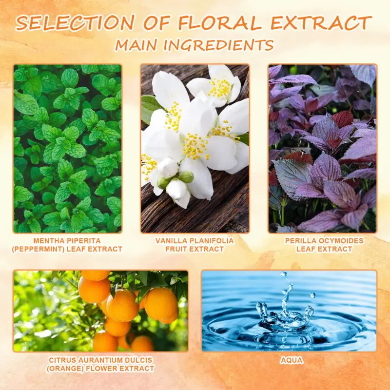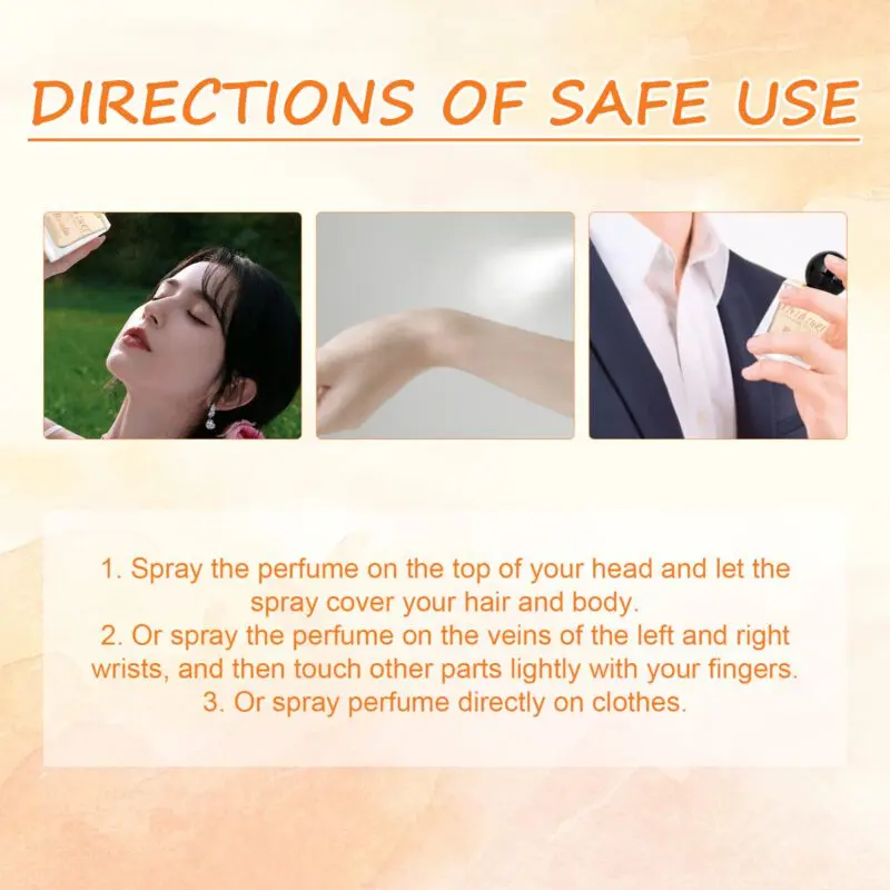 Dopamine Perfume features natural ingredients including peppermint leaf extract, orange flower extract, and vanilla fruit extract. This light fragrance creates a pleasant sensory experience with versatile application: spray on hair/body, apply to wrists, or mist directly on clothing. Designed for daily wear with a balanced, enduring scent profile.