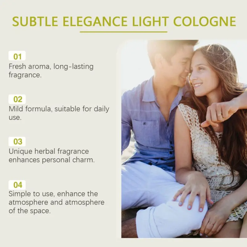 This Cologne Charm perfume features jasmine, sandalwood, and patchouli extracts for a subtle woody aroma. The lightweight formula offers fresh, long-lasting fragrance when applied to pulse points like wrists and neck. Simple application: spray 1-2 times for optimal scent distribution. Balanced blend creates an inviting, sophisticated fragrance experience suitable for daily wear.