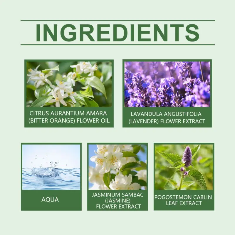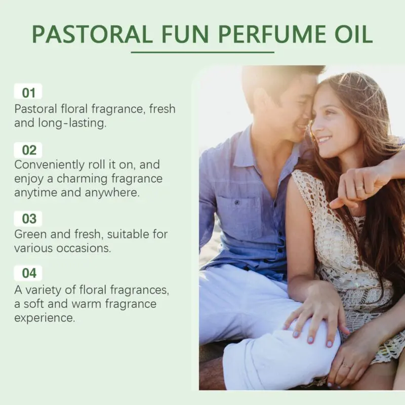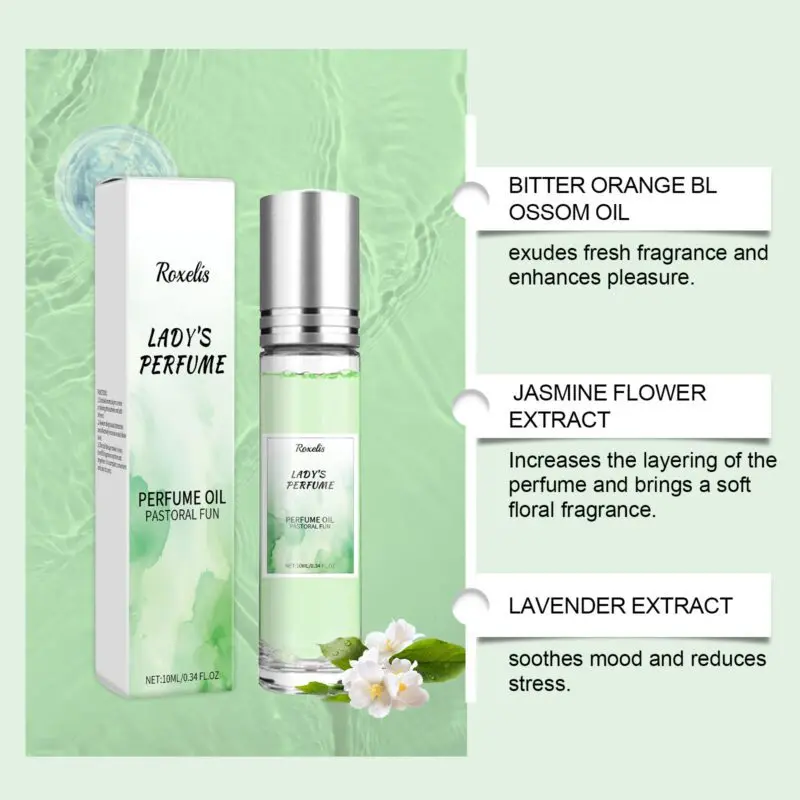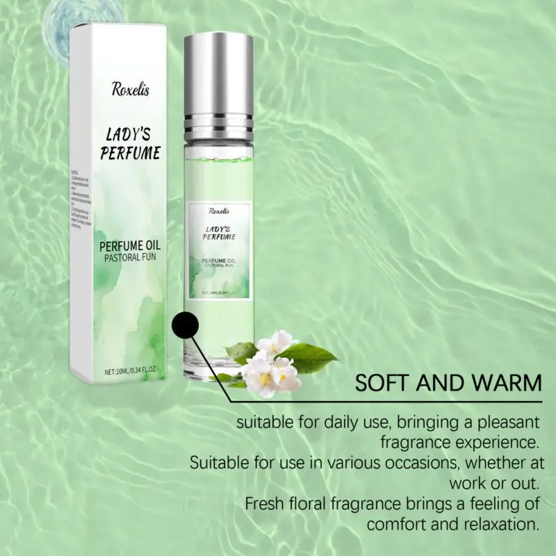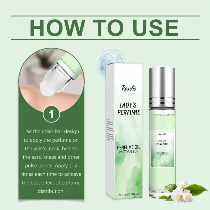 Fresh green perfume infused with lavender and patchouli extracts for a long-lasting fragrance. Features a convenient roll-ball applicator for precise application to pulse points like wrists, neck, and behind ears. Compact design for easy portability and on-the-go use.