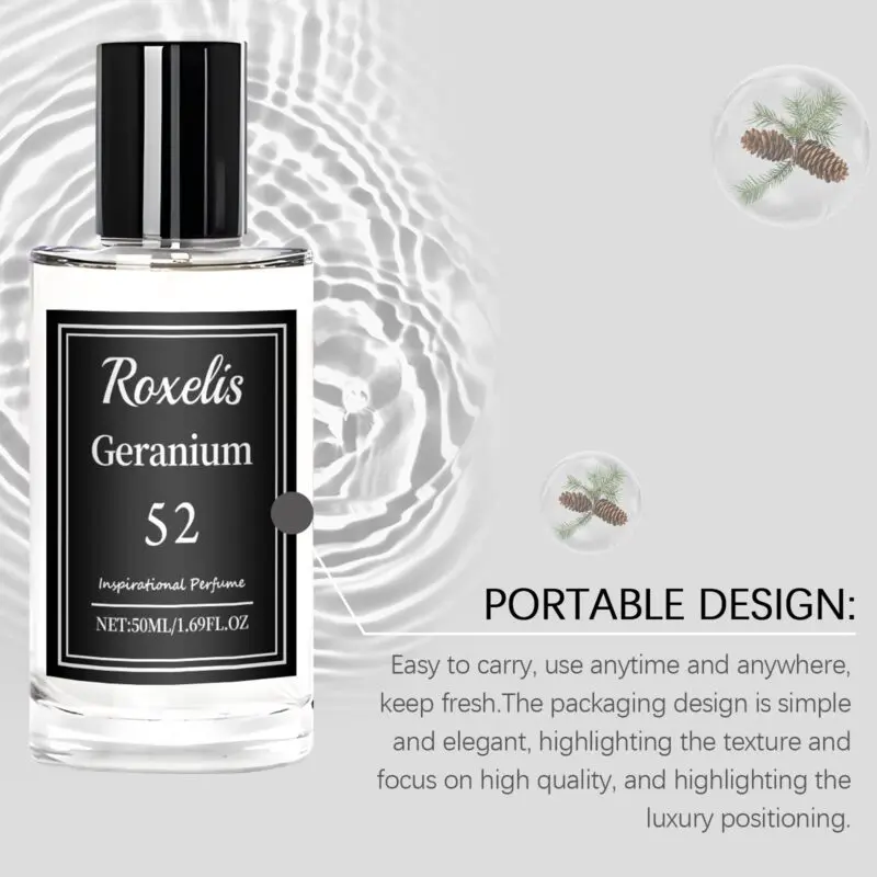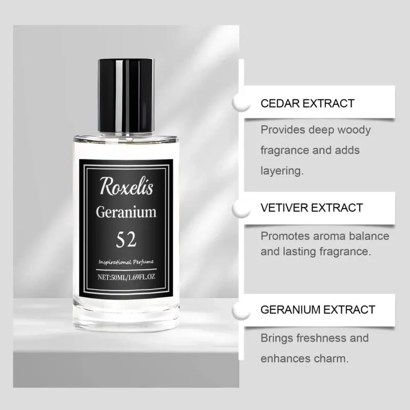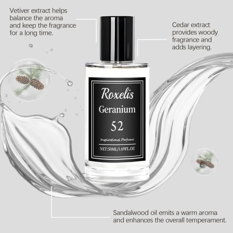 Roxelis Geranium Inspired Perfume – Floral Fragrance with Sandalwood & Vetiver Notes