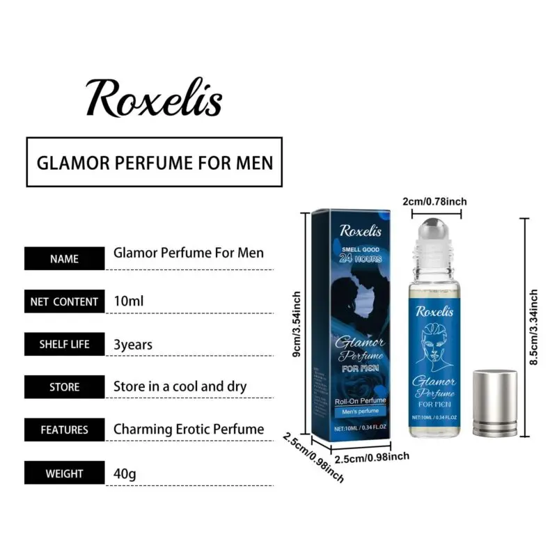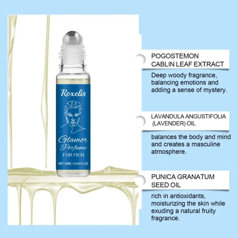 Glamor Men’s Perfume features a blend of Pogostemon Cablin Leaf Extract, Coconut Oil, and Lavender Oil. This fragrance moisturizes skin while delivering a fresh, natural aroma. Apply by rolling the perfume ball on pulse points like wrists and neck. Designed for lasting wear with a calming scent profile that complements personal style.