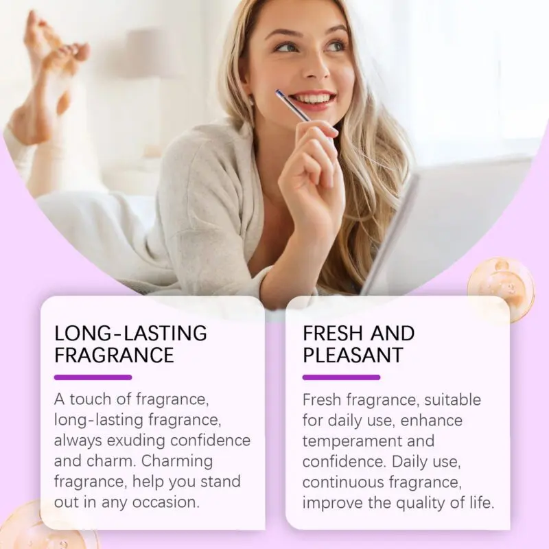 Herbal Charm Perfume combines rose extract, citrus fruit extract, and cedar wood oil for a subtle fragrance that enhances confidence. The versatile scent is suitable for daily wear and special occasions. To use: 1. Open bottle cap 2. Spray on neck, wrists, or desired areas. Designed to complement your personal style with a refined botanical aroma.