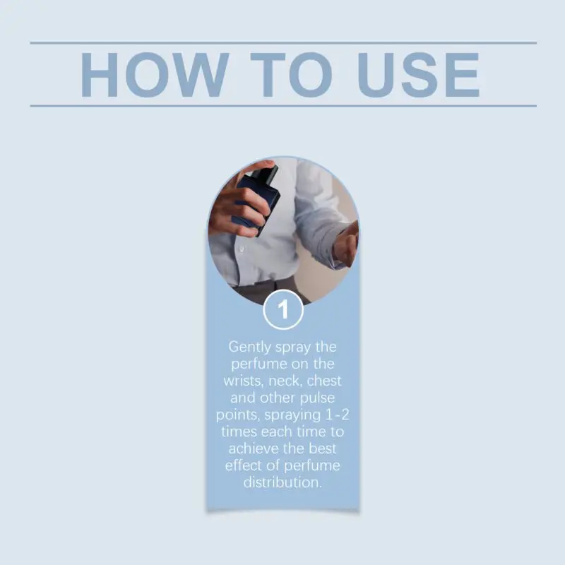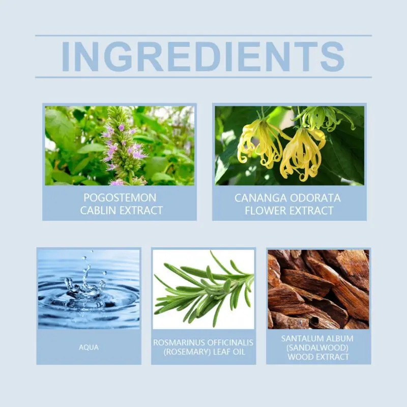 Men’s fragrance featuring rosemary oil and sandalwood extract for a fresh, long-lasting scent. Apply by gently spraying on pulse points like wrists, neck, and chest. Versatile aroma suitable for daily wear and special occasions.