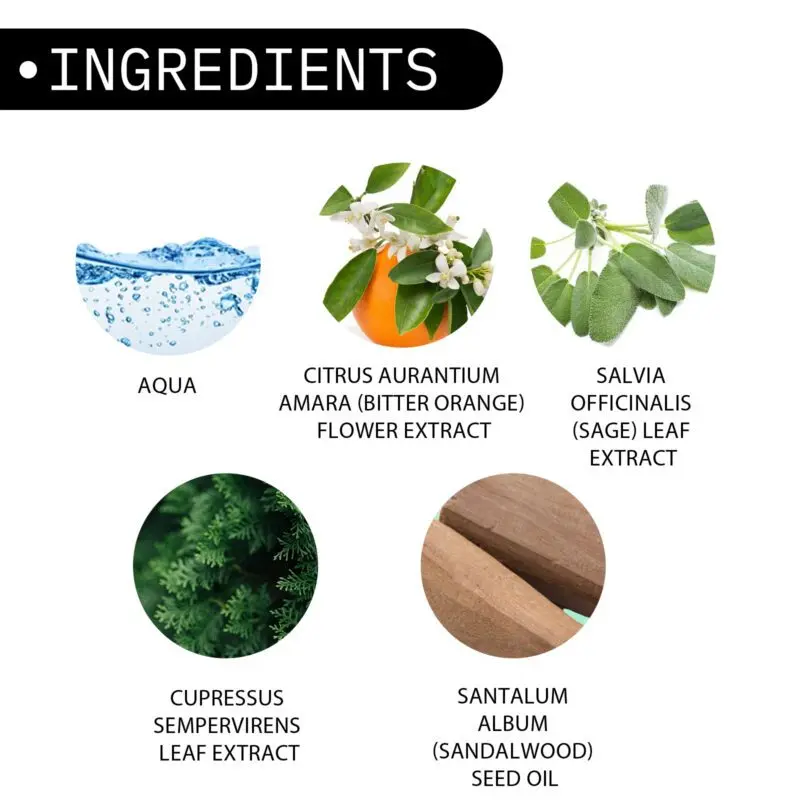 Men’s perfume infused with lime flower extract and sage leaf extract. Offers a distinctive fragrance while maintaining subtlety for daily wear. Apply by spraying on pulse points like wrists, neck, and behind ears. Features long-lasting freshness with natural botanical elements for modern grooming needs.