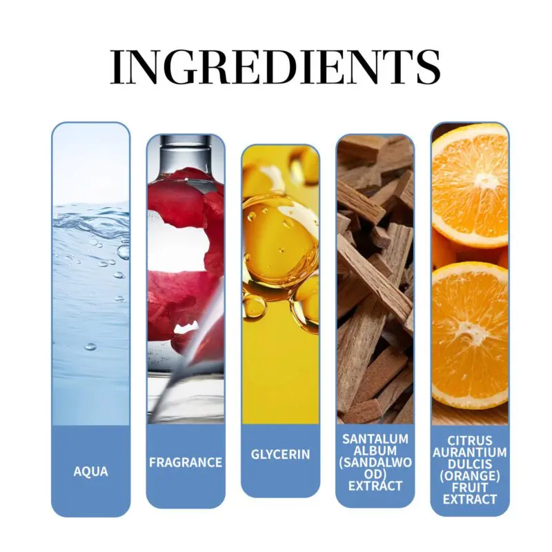 Sandalwood Buddha fragrance features glycerin, sandalwood extract, and sweet orange extract for a lasting scent. Apply by spraying on wrists, neck, and behind ears, or mist into air for even distribution. Offers a fresh, sophisticated aroma for daily wear.