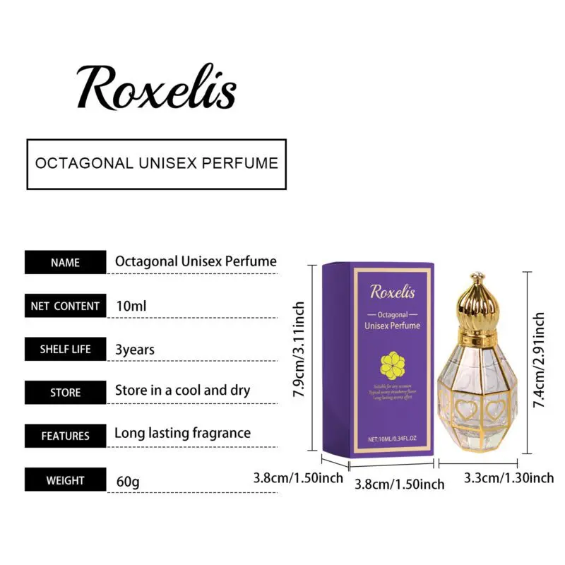 Roxelis Octagonal Unisex Perfume – Fresh Natural Fragrance for Men & Women with Long-Lasting Scent