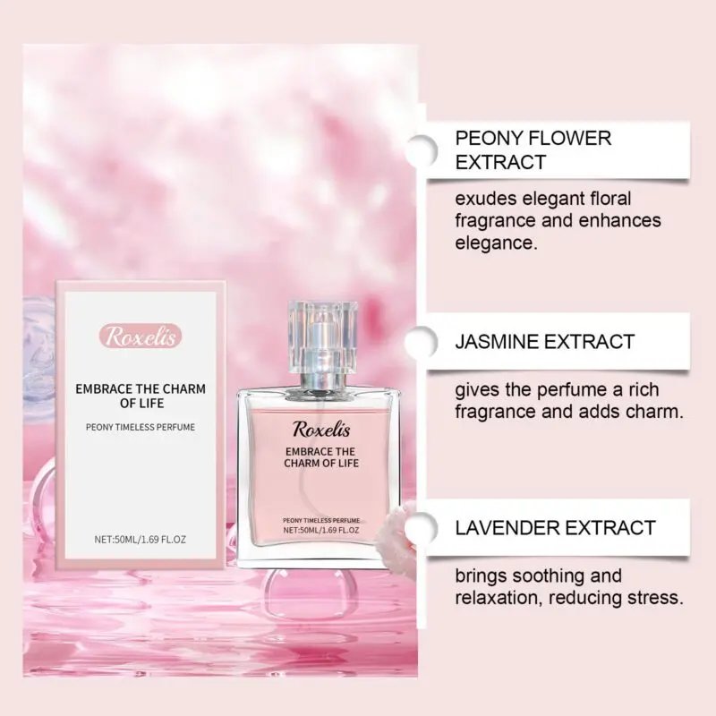 Roxelis Peony Perfume with Jasmine & Lavender – Long-Lasting Floral Scent