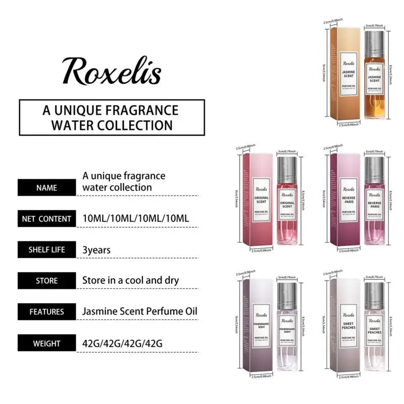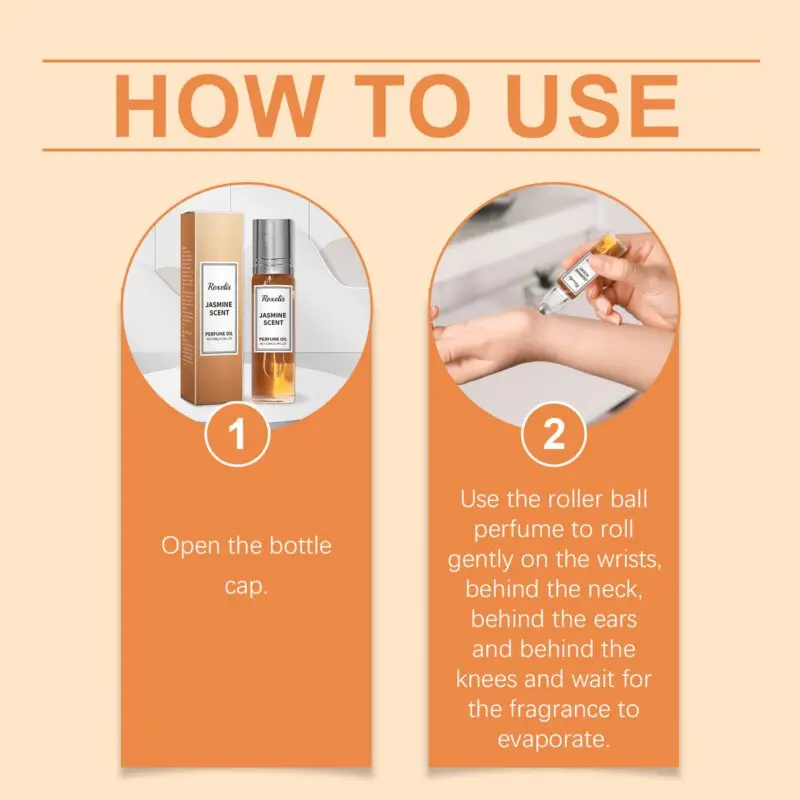 This portable perfume features a fresh, light fragrance with natural extracts. Jasmine variant contains patchouli leaf extract and rose oil, while pomegranate version includes fruit extracts for a subtle aroma. Easy application: 1. Open cap 2. Roll on pulse points (wrists, neck, behind ears). Compact design for on-the-go freshness. Provides layered scent experience with natural ingredients.