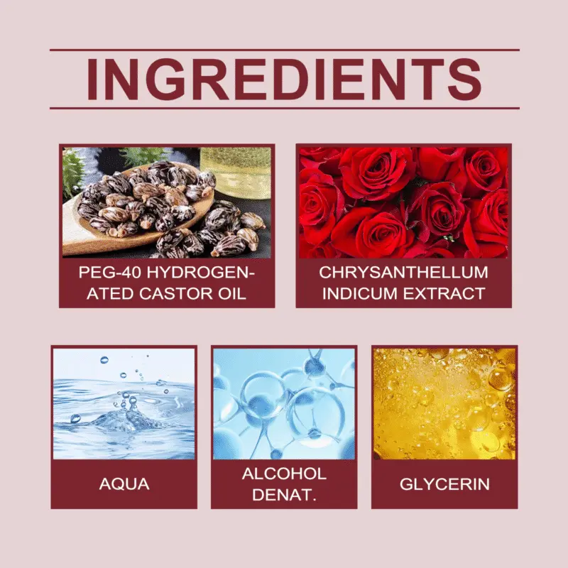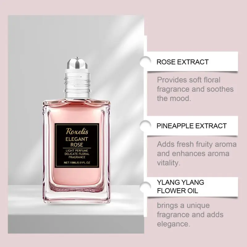 This rose-scented fragrance water combines PEG-40 hydrogenated castor oil and glycerin to create a soft floral aroma. Features fresh fruit notes for enhanced complexity. Apply to pulse points using included massage ball for scent diffusion. Formulated with rose extract and pineapple extract for a fresh, pleasant fragrance. Lightweight essential oil blend maintains subtle aroma throughout daily wear.