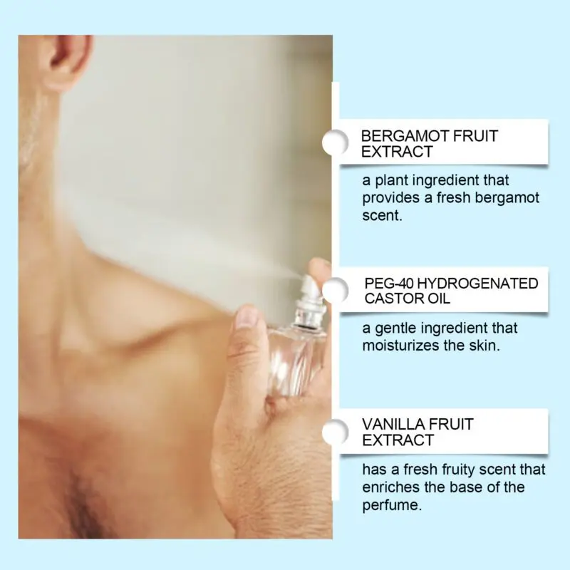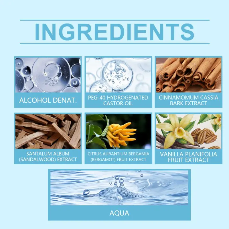 Men’s sandalwood cologne infused with bergamot and vanilla extracts. Features a light, fresh scent suitable for daily wear. Apply by spraying on pulse points or misting into air for even distribution. Offers a clean, woody fragrance that maintains freshness throughout the day.