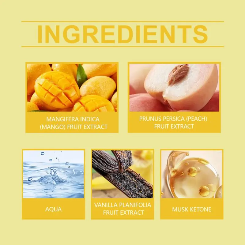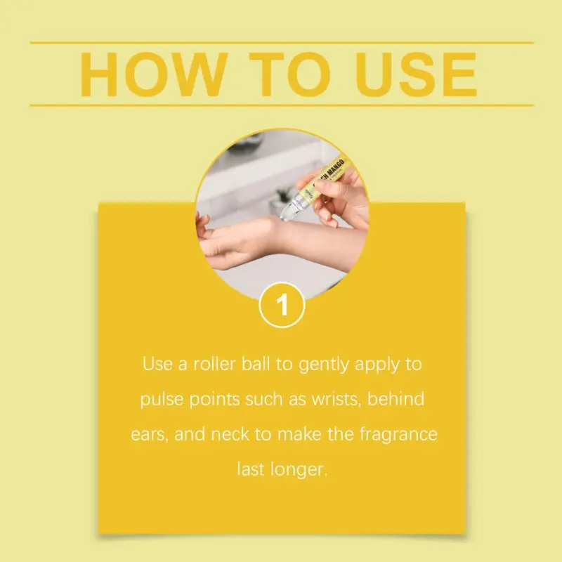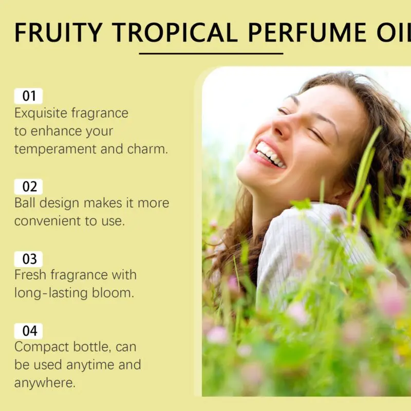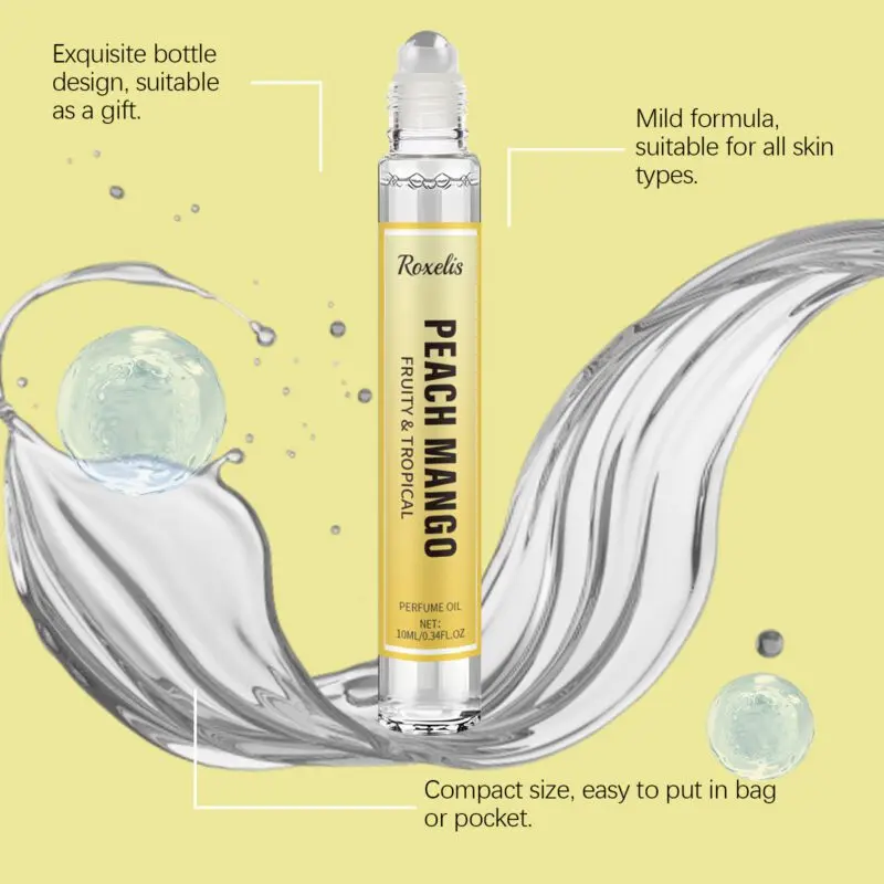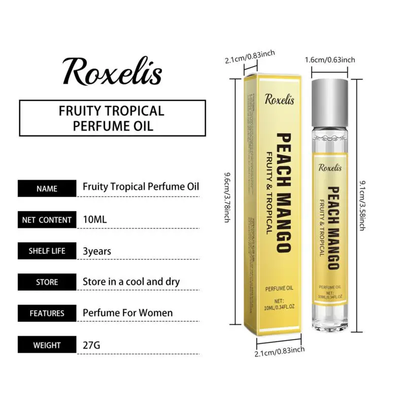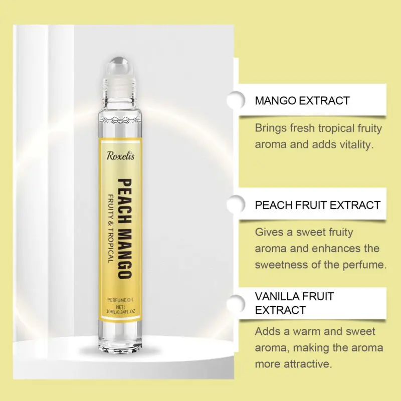This tropical fruit perfume features mango extract, peach extract, and musk for a fresh, vibrant aroma. The roll-on applicator allows easy application to pulse points like wrists and neck for long-lasting fragrance. Sweet fruity notes blend with musk to create a layered, light scent perfect for daily wear. Provides a comfortable summer-inspired fragrance experience.