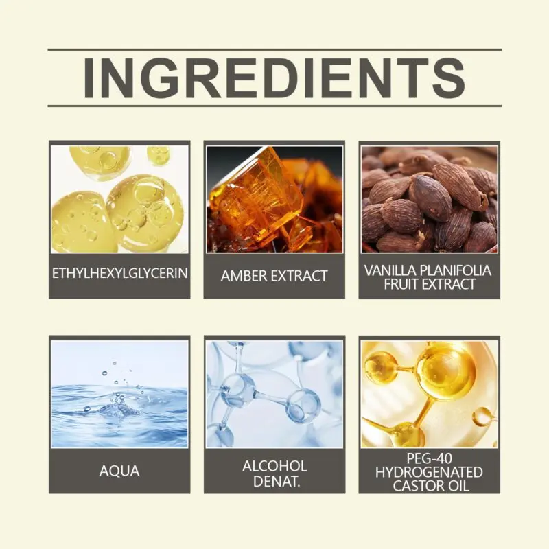 This vanilla amber eau de toilette features denatured ethanol and PEG-40 hydrogenated castor oil, offering a refreshing aroma with fresh fruity notes. The warm amber base adds depth to this versatile fragrance suitable for both casual and special occasions. For application, spray on wrists, neck, and behind ears. Alternatively, mist into air and walk through for even dispersion. Designed to maintain its character while worn.