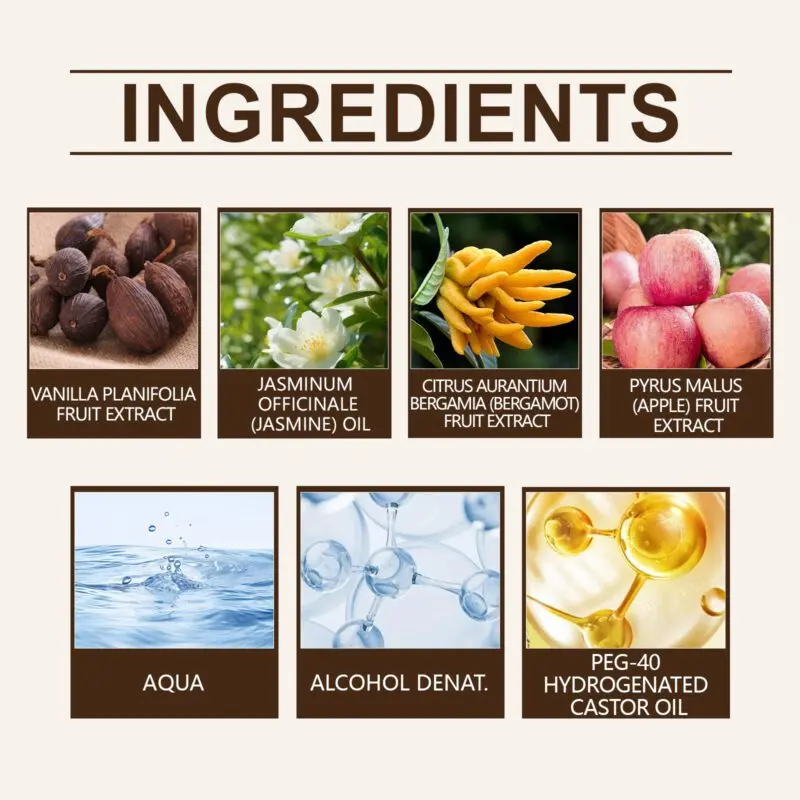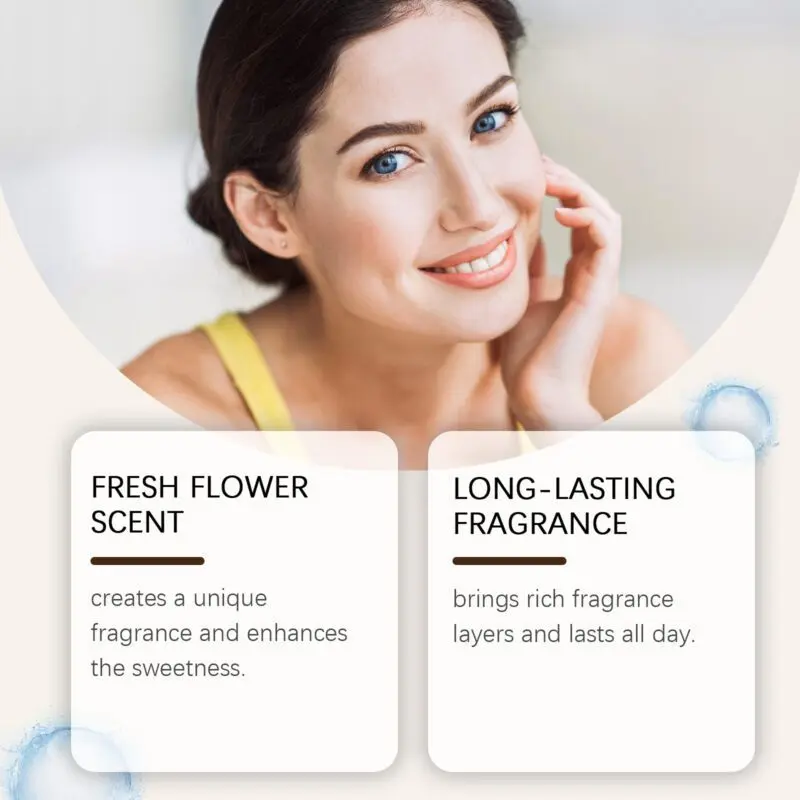 Vanilla Apple Romantic Body Fragrance features denatured ethanol and PEG-40 hydrogenated castor oil for a delicate sweet aroma. Apply by spraying on pulse points like wrists and neck, or mist into air for even distribution. Provides a fresh, light scent suitable for daily wear.