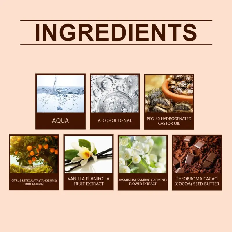 Our vanilla body spray contains PEG-40 hydrogenated castor oil and vanilla extract for a fresh, natural fragrance experience. Apply lightly to hair, neck, and body (1-2 sprays recommended) for even fragrance distribution. Features a warm, luxurious vanilla scent suitable for daily wear and various occasions to enhance personal presence.