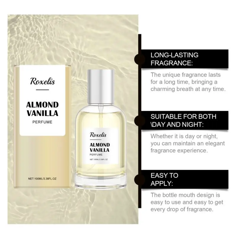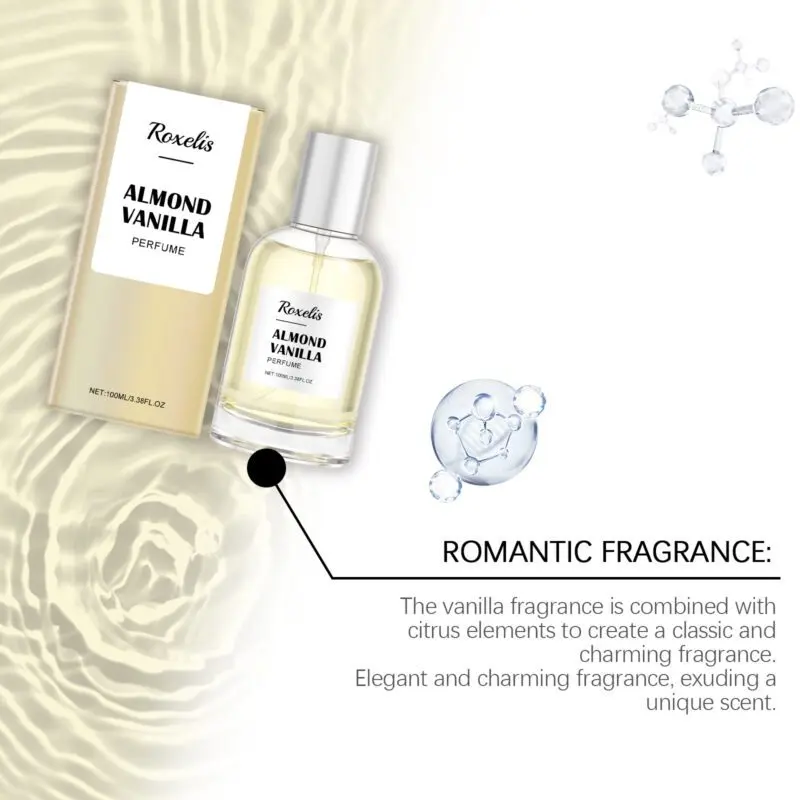 Crafted with vanilla, sweet almond, and citrus lemon extracts, this perfume offers a delicate balance of sweet and fresh notes. The light yet enduring fragrance creates a romantic ambiance, perfect for daily wear. Apply to pulse points for even distribution and a lasting, elegant aroma that enhances confidence and charm. Features a subtle scent profile for a soft, comfortable experience without overwhelming intensity.