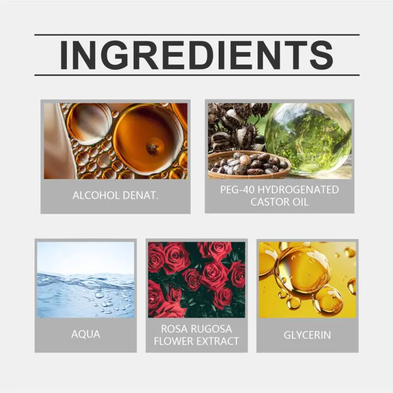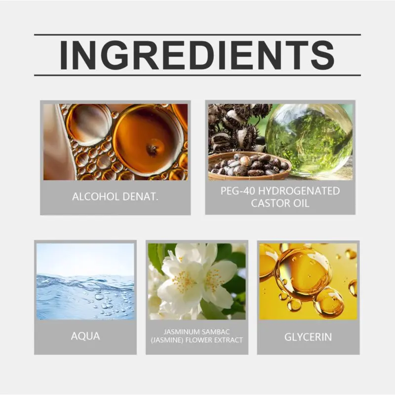 This eau de toilette features a blend of hibiscus bark extract, rose extract, jasmine flower extract, and bergamot fruit extract. Apply by gently spraying 1-2 times on pulse points like wrists, neck, and chest for optimal fragrance distribution. Offers a warm woody aroma with fresh floral notes that maintain elegance throughout the day.