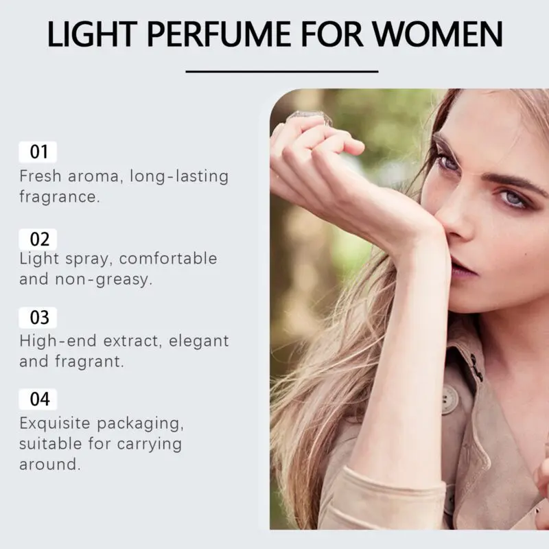 Experience a delicate and lasting fragrance with our women’s eau de toilette spray. Formulated with frankincense oil, freesia extract, and musk extract, this perfume offers a warm, woody scent enhanced by floral freshness. Apply by gently spraying 1-2 times on pulse points like wrists and neck for optimal diffusion. Features a lightweight, non-greasy formula for comfortable wear with a refreshing finish.