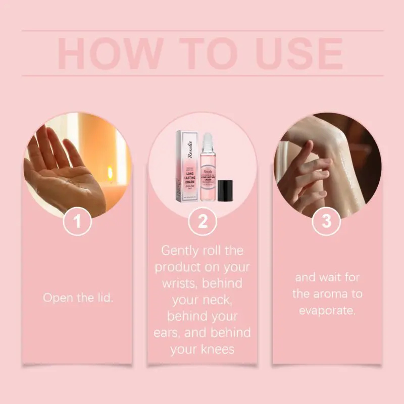 Portable roller perfume infused with rose oil and green lavender extract for a fresh, floral scent. Easy application: 1. Remove cap 2. Apply to wrists, neck, and pulse points 3. Let fragrance develop. Features lightweight formula that maintains scent stability throughout the day. Suitable for everyday use with subtle floral notes.