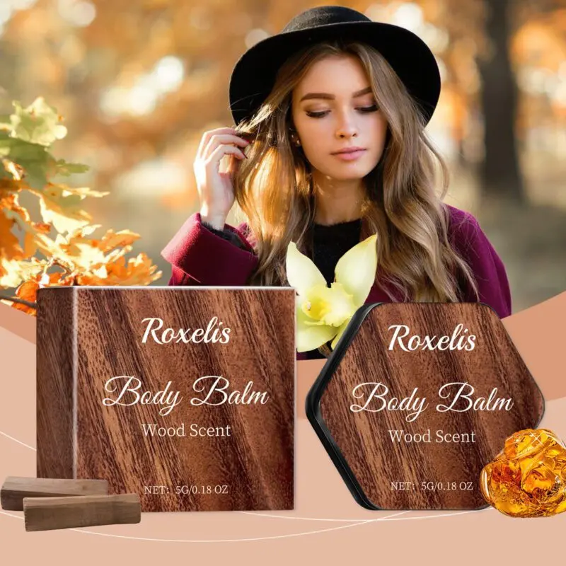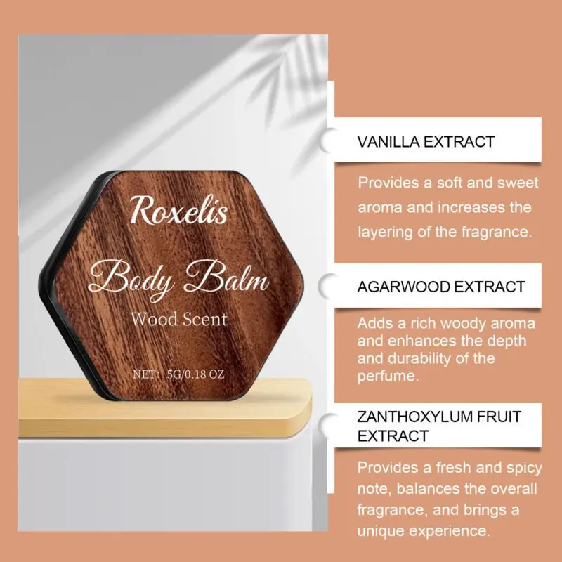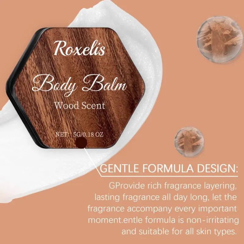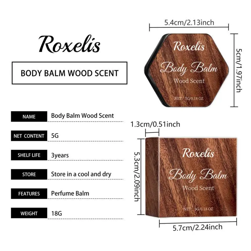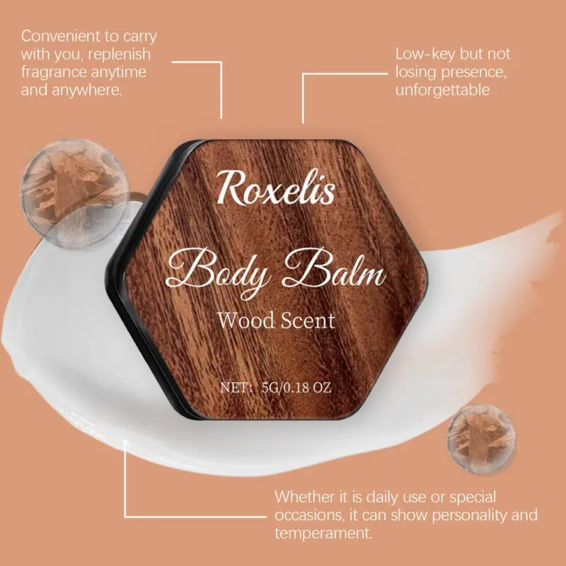 Roxelis Wood Body Balm with Light Fragrance – Non-Sticky, Portable Perfumed Skin Balm