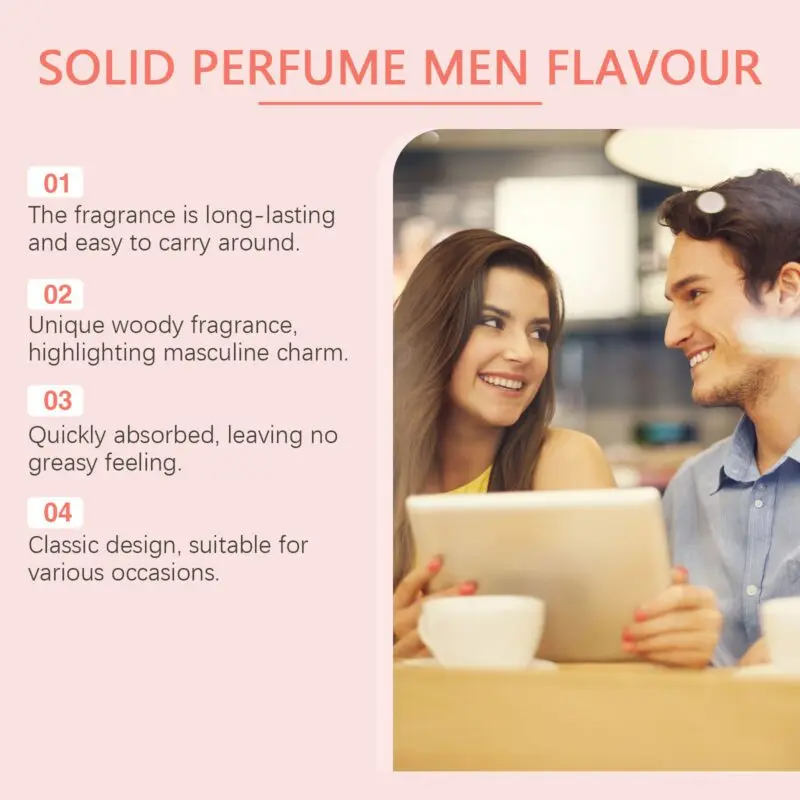 Men’s citrus balm tube infused with beeswax, citrus extract, and sweet almond oil. Features a warm woody aroma with fresh citrus notes for long-lasting fragrance. Application guide: 1. Clean and dry skin; 2. Apply sparingly to wrists, neck, and behind ears. Formulated with skin-friendly essential oils for gentle care.